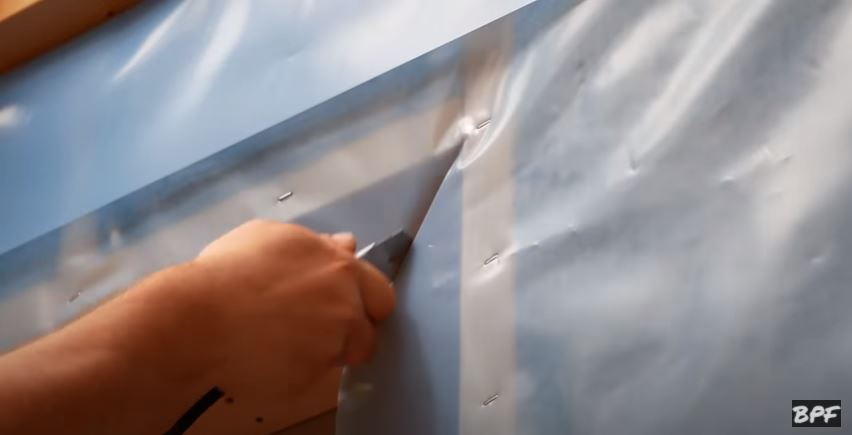 Обрезка пароизоляции на оконном проеме