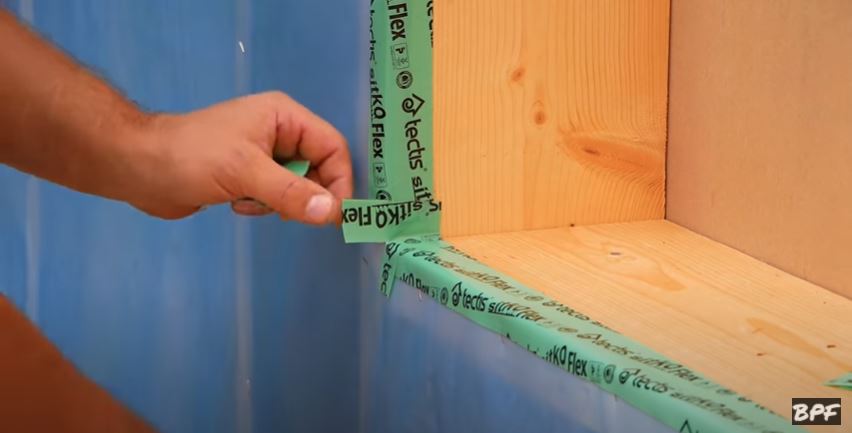 - Проклейка пароизоляции в углах оконных проемов.