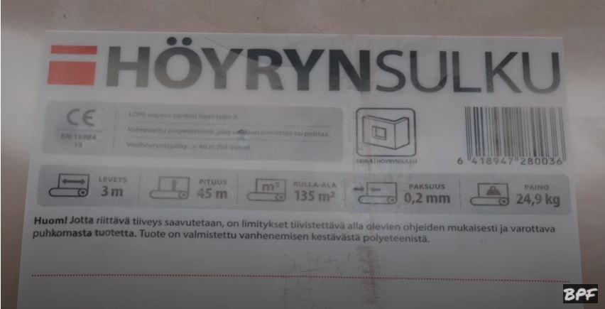 Традиционно финны используют полиэтиленовую пленку в качестве пароизоляции толщиной 0,2 мм. Это минимальная толщина. В принципе, я не знаю, в основном она такая и продаётся по 0,2 мм. Есть еще разные, какие-то другие могут встречаться пленки, но, честно говоря, на всех объектах за столько лет уже не знаю, встречал только плёнку в качестве пароизоляции, именно пароизоляции.