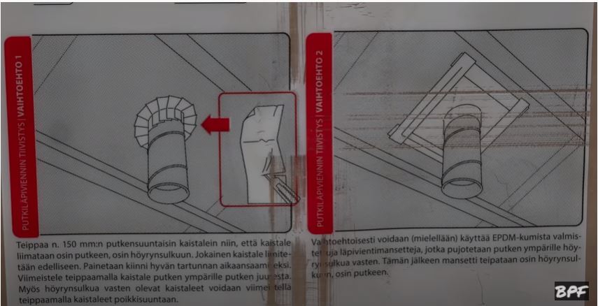 То есть я сейчас приложу фотографии именно с упаковки какие есть варианты, что хотят производители, как сделать выполнить пароизоляцию. То есть это будут отдельные фотографии, я их сделал максимально как... чтобы вам было по каждой отдельно лучше видно. Поэтому их 14 штук, каждая пойдёт в последовательности от верха вниз. То есть смотрите каждую там, если кто-то захочет... Немного потёртый рулон, но максимально лучший нашли, вот сфотографировали, но по картинкам всё будет видно - где какие узлы, как что можно сделать, и так далее.
