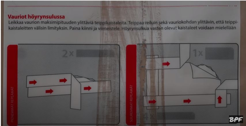 Все отверстия, которые появились, вот именно в той пленке, которую мы прибивали заранее, всё равно, потому мы что делаем, ходим, тут гвоздь упал, там ногой наступил проткнул пленочку и появилась отверстие. Эти отверстия нужно конечно же обязательно пройти, просмотреть, и обязательно проклеить. Всё что я увидел - я всё проклеил. Очень важный момент здесь.